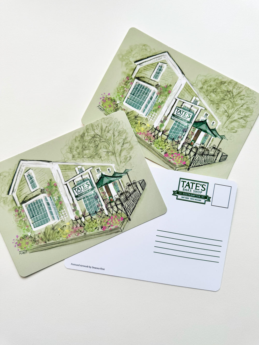 In an exciting creative collaboration, Tate’s Bake Shop partnered with renowned NYC-based fashion illustrator Deanna First to celebrate their iconic Southampton storefront with a limited-edition T-shirt design sold online and in-store. Known for her line-work, hand-drawn illustrations, Deanna brought her signature style to the beloved Tate’s Cookies brand, capturing the charm and heritage of the original Tate’s Bake Shop in the Hamptons.