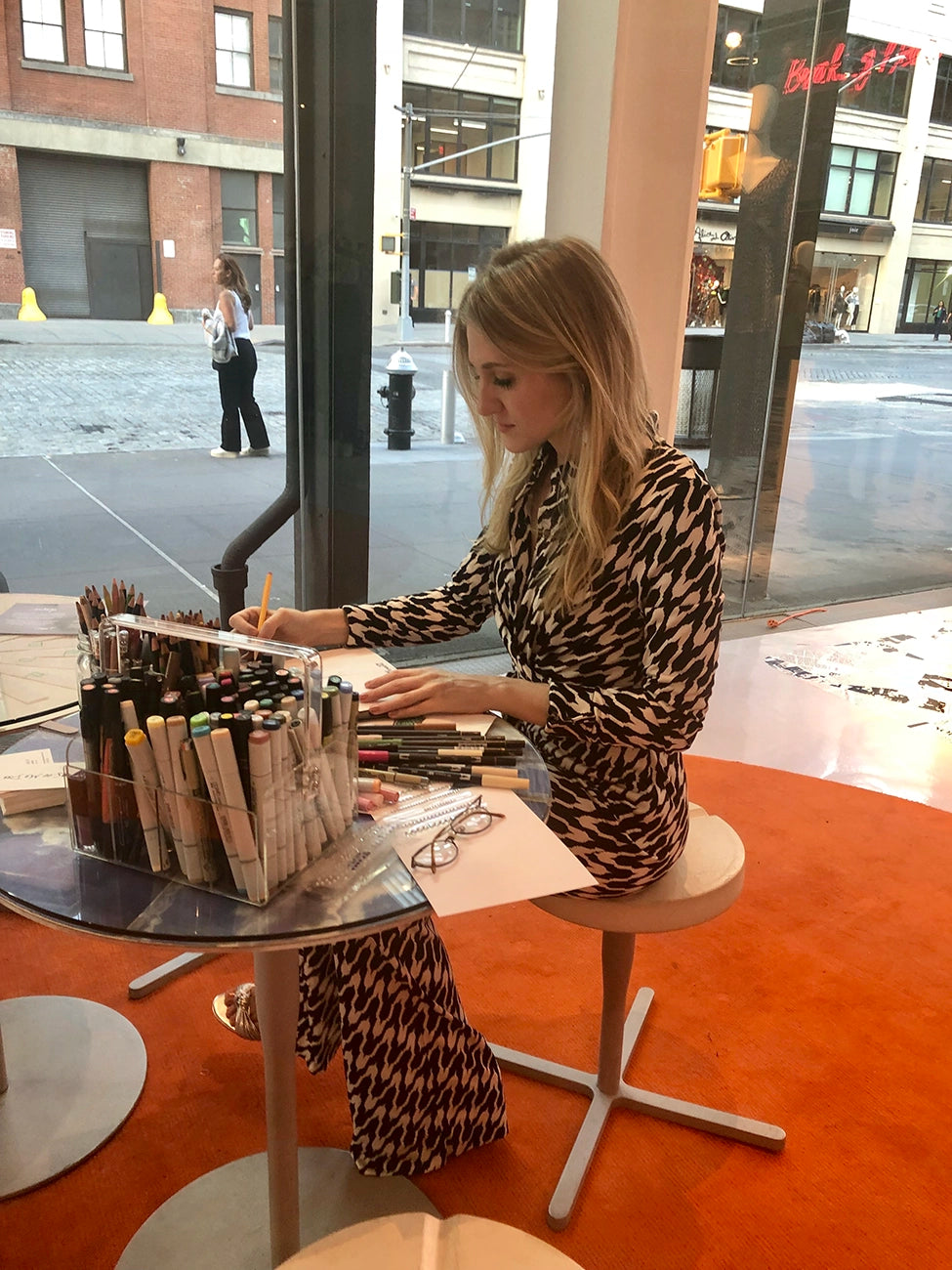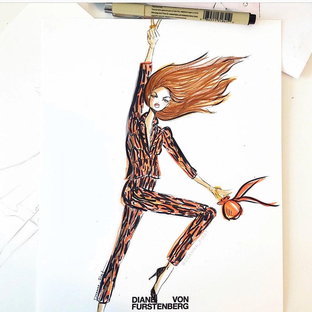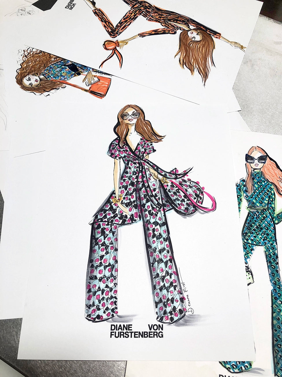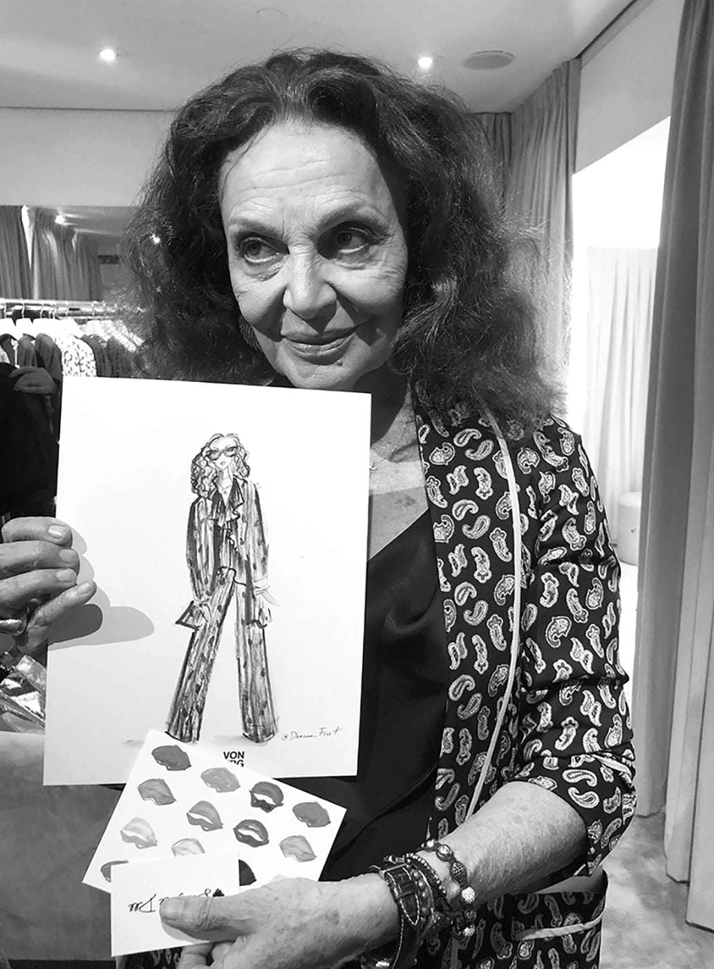 For International Women's Day, illustrator and creative female entrepreneur, Deanna First attended a live sketch event for the global fashion icon, Diane von Furstenberg. Located at her iconic flagship store in the Meatpacking District, Deanna sketched industry moguls, fashion influencers, and the legend herself, DVF.