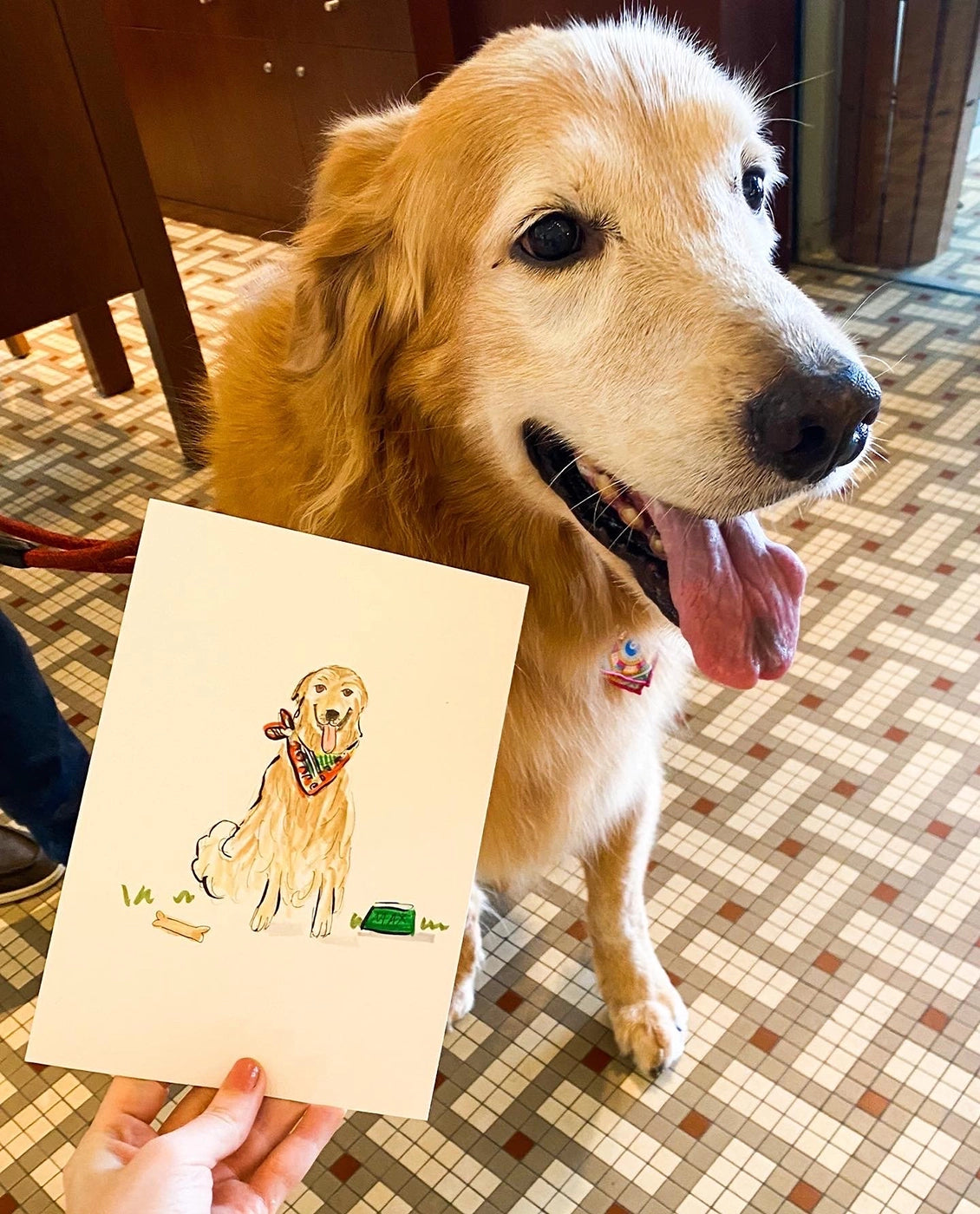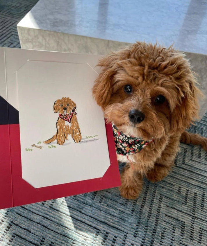 Guests were invited to bring their pups for a stylish day of pampering, luxury accessories and dog treats, and custom illustrations. Deanna captured each dog’s unique personality creating one-of-a-kind, framable keepsakes for attendees to take home.