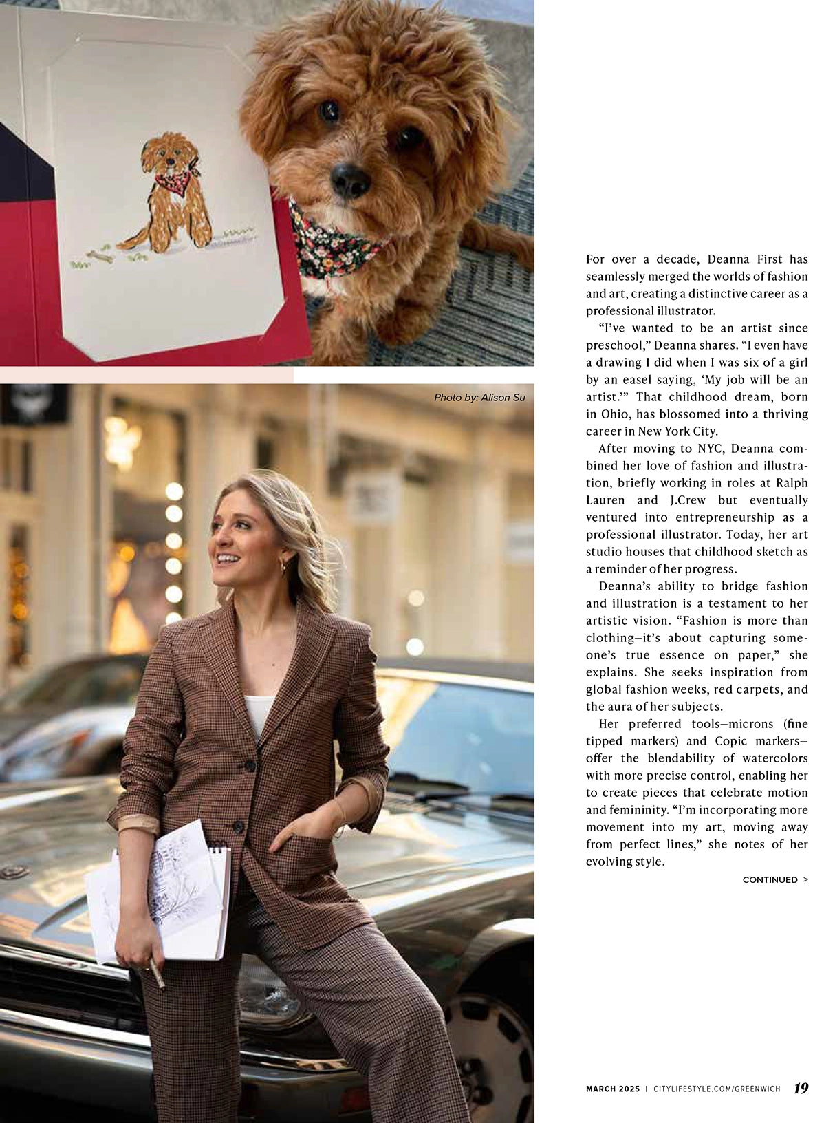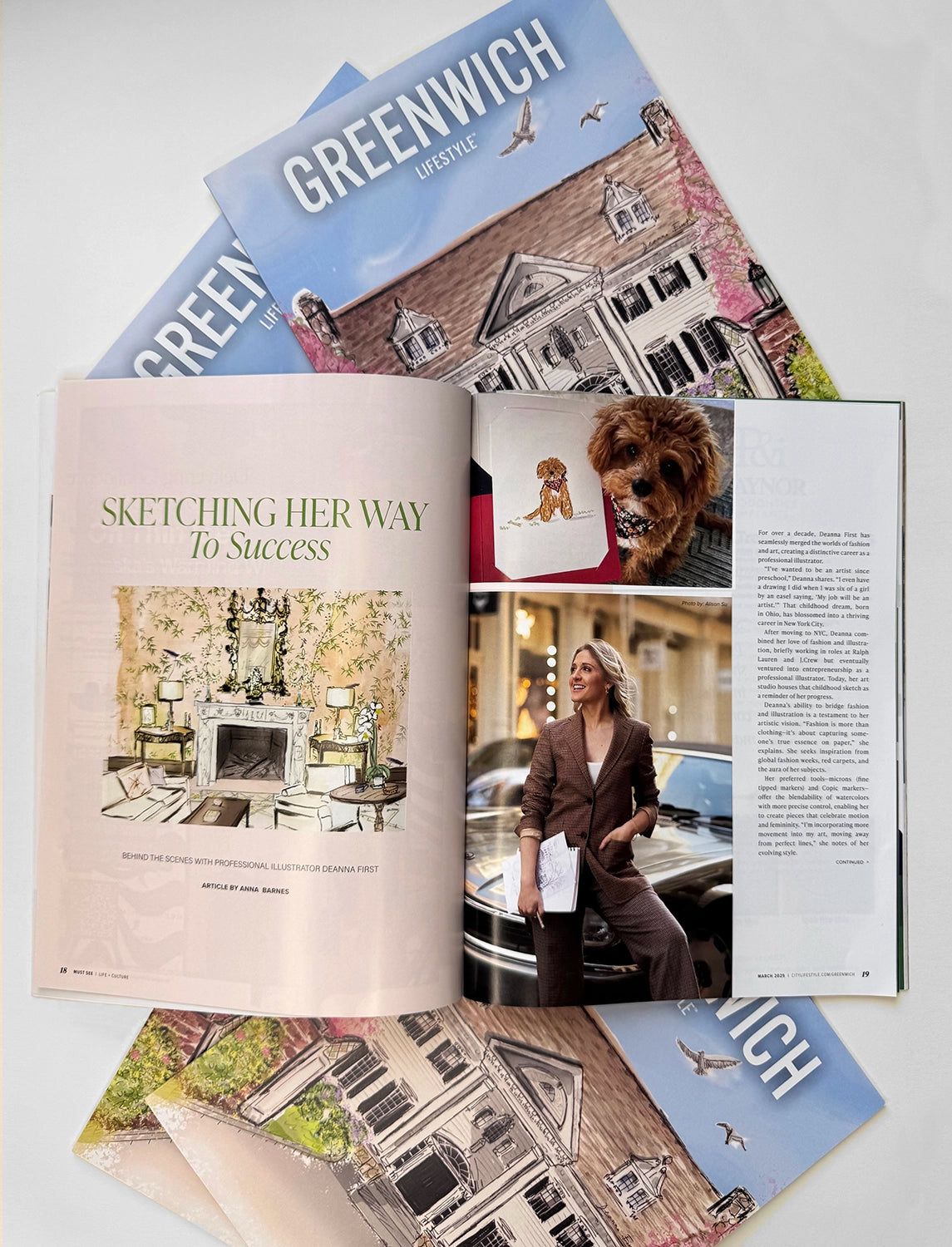 NYC-based fashion illustrator Deanna First is making headlines with her inspiring feature in Greenwich Lifestyle Magazine, titled "Sketching Her Way to Success." In this exclusive interview, Deanna opens up about her creative journey, from her early passion for drawing to becoming a sought-after illustrator known for her chic, feminine aesthetic and collaborations with top fashion and lifestyle brands.