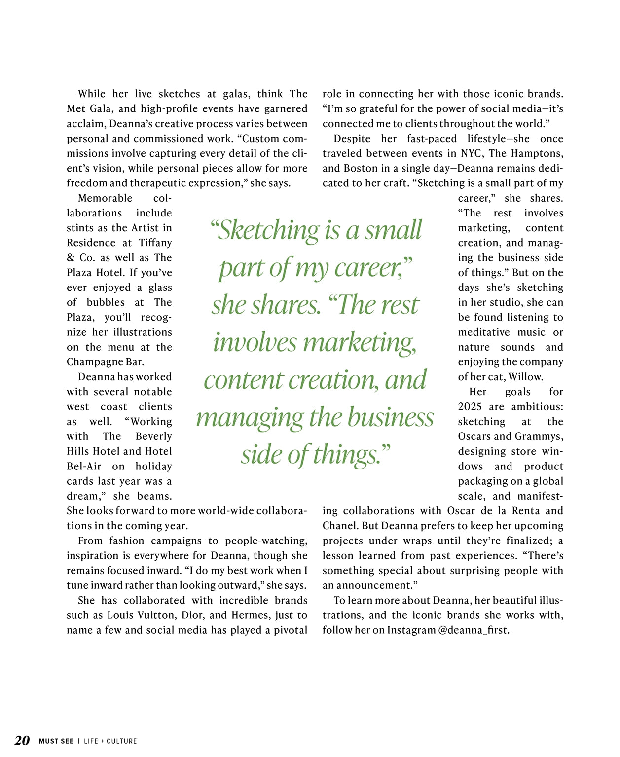 The article dives deep into her life in New York City, her artistic process, and how she built a successful career following her childhood dream of becoming an artist. Deanna also shares her professional milestones, the challenges of the freelance world, and her ambitious goals for 2025, including expanding her brand into a household name.