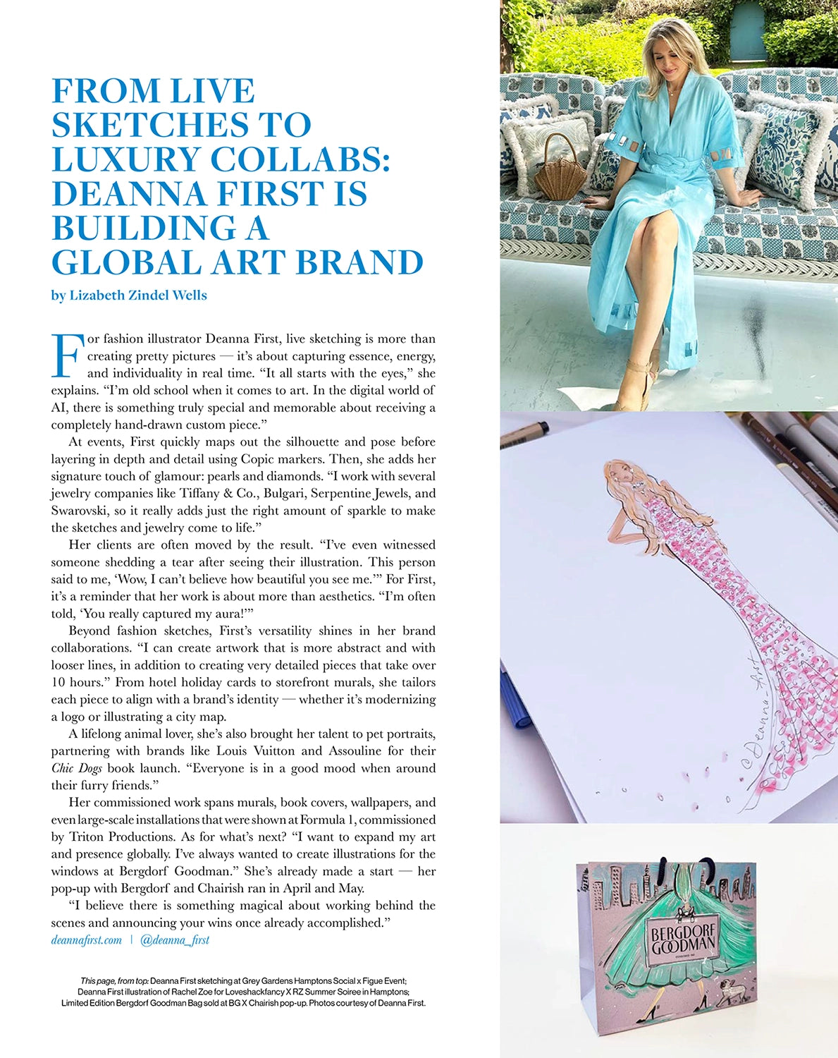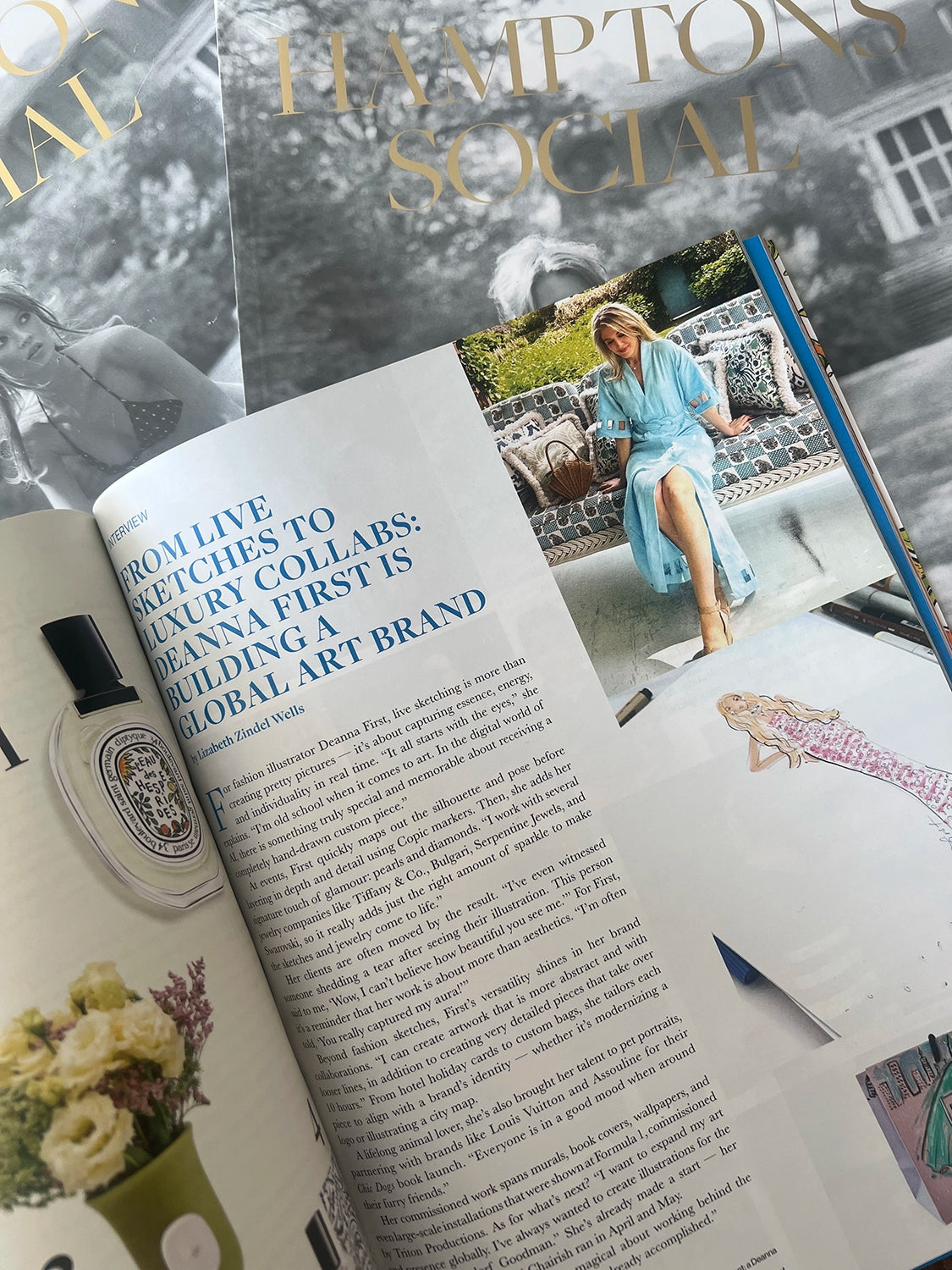 NYC-based fashion illustrator Deanna First is proudly featured in the Summer 2025 issue of Hamptons Social Mag, showcasing her signature blend of modern elegance and timeless glamour. This exclusive editorial highlights Deanna’s latest work inspired by the East End’s summer style, where high fashion meets coastal sophistication. With her distinctive hand-drawn aesthetic and a keen eye for detail, Deanna captures the essence of seasonal luxury through bespoke illustrations that celebrate art, fashion, and the spirit of summer in the Hamptons.