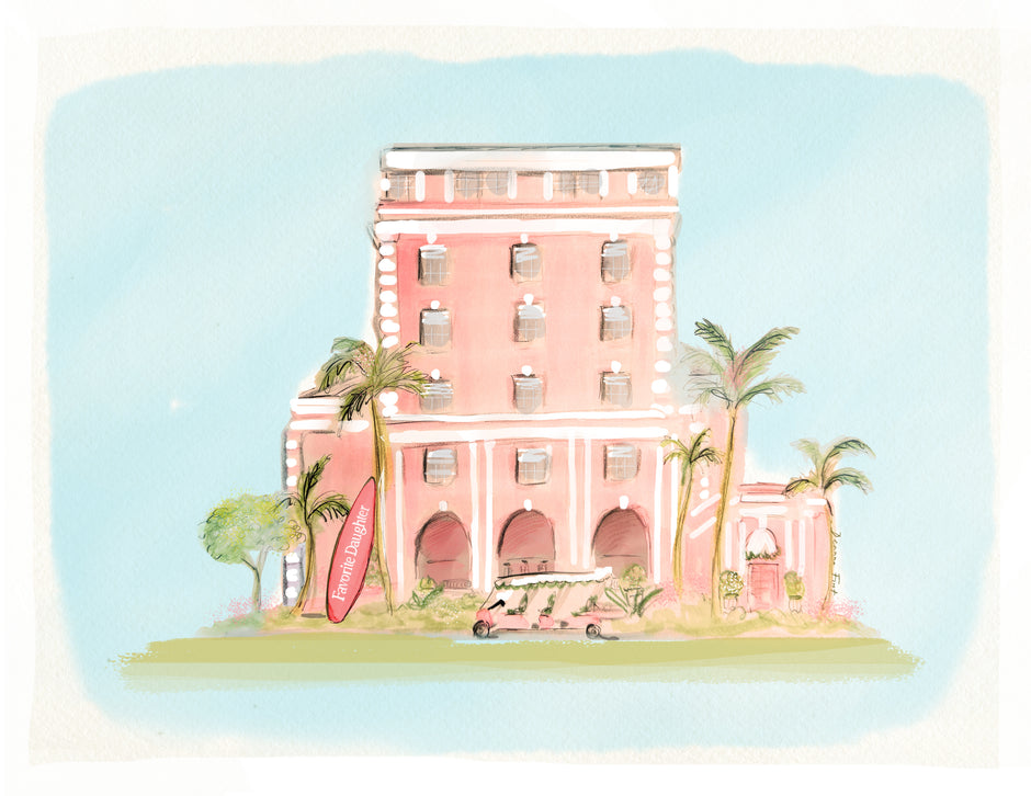Experience the unique fusion of luxury and local artistry with The Colony Hotel x Favorite Daughter collaboration. This exclusive partnership celebrates the iconic elegance of The Colony Hotel through the vibrant and captivating illustrations of renowned artist Deanna First. Commissioned to capture the timeless charm and coastal allure of The Colony Hotel, Deanna First’s artwork brings a fresh, contemporary perspective to the beloved landmark