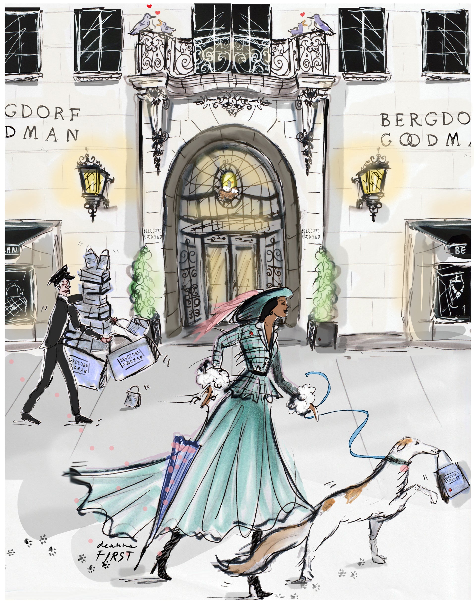 Step into the world of fashion and lifestyle illustrator Deanna First's Storefronts & Interiors collection, where art meets architecture in stunning detail. Known for her signature style and easily recognizable line work. Deanna showcases her collaborations with global luxury brands including Valentino, Tiffany & Co., and Saks Fifth Avenue.