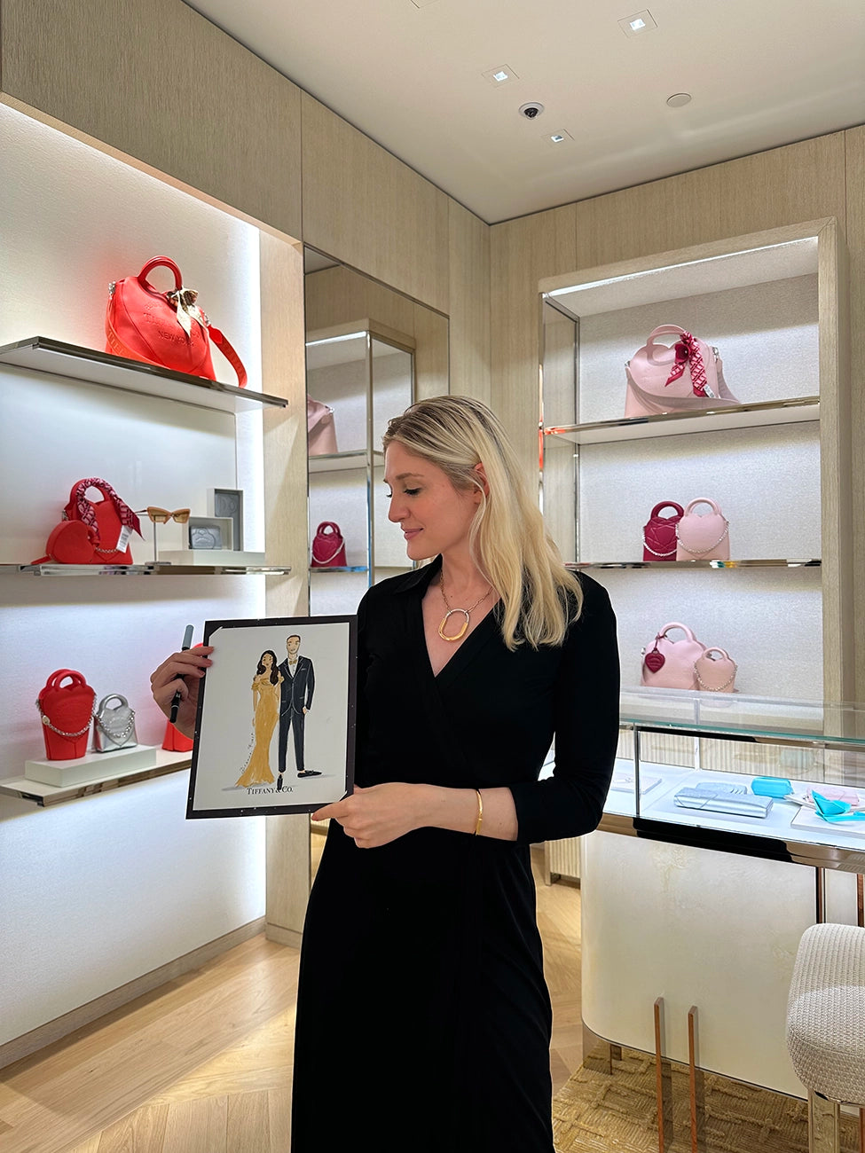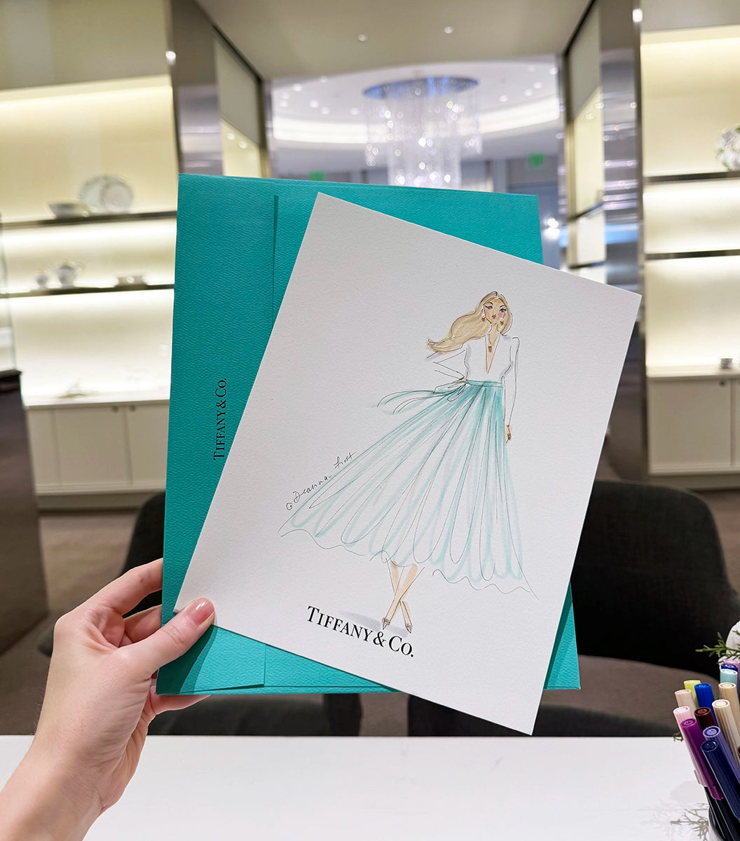First illustrated select jewelry pieces for guests and VIP clients as well as full body fashion illustrations using markers, colored pencils, silver and gold. As a trusted creative partner to Tiffany & Co., Deanna First’s live sketches brought a unique, personalized touch that engaged customers, complementing the iconic brand’s legacy.